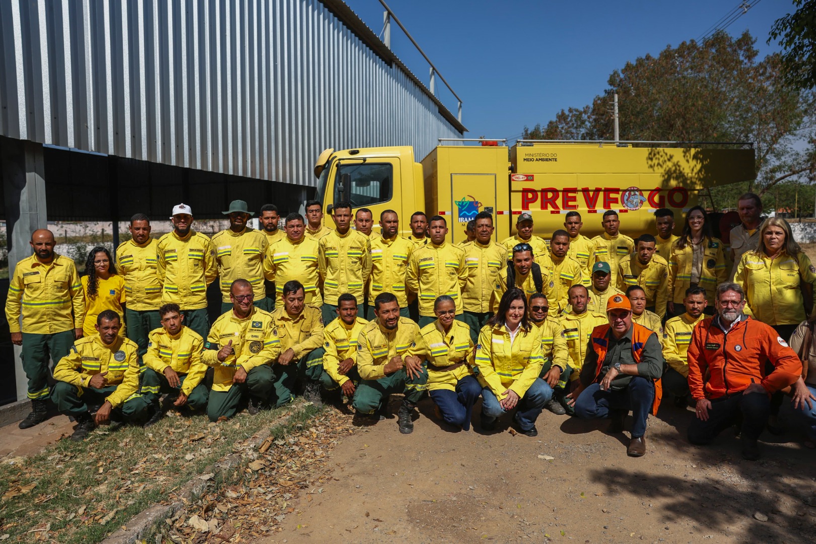 O metereologista Vinicius Sperling, do Cemtec/Semadesc, reforçou as informações sobre a seca atípica e a escassez hídrica desse ano. Desde setembro do ano passado, disse, a região já enfrentou sete ondas de calor e está há 73 dias sem chuvas.As ministras e a equipe de combate aos incêndios.